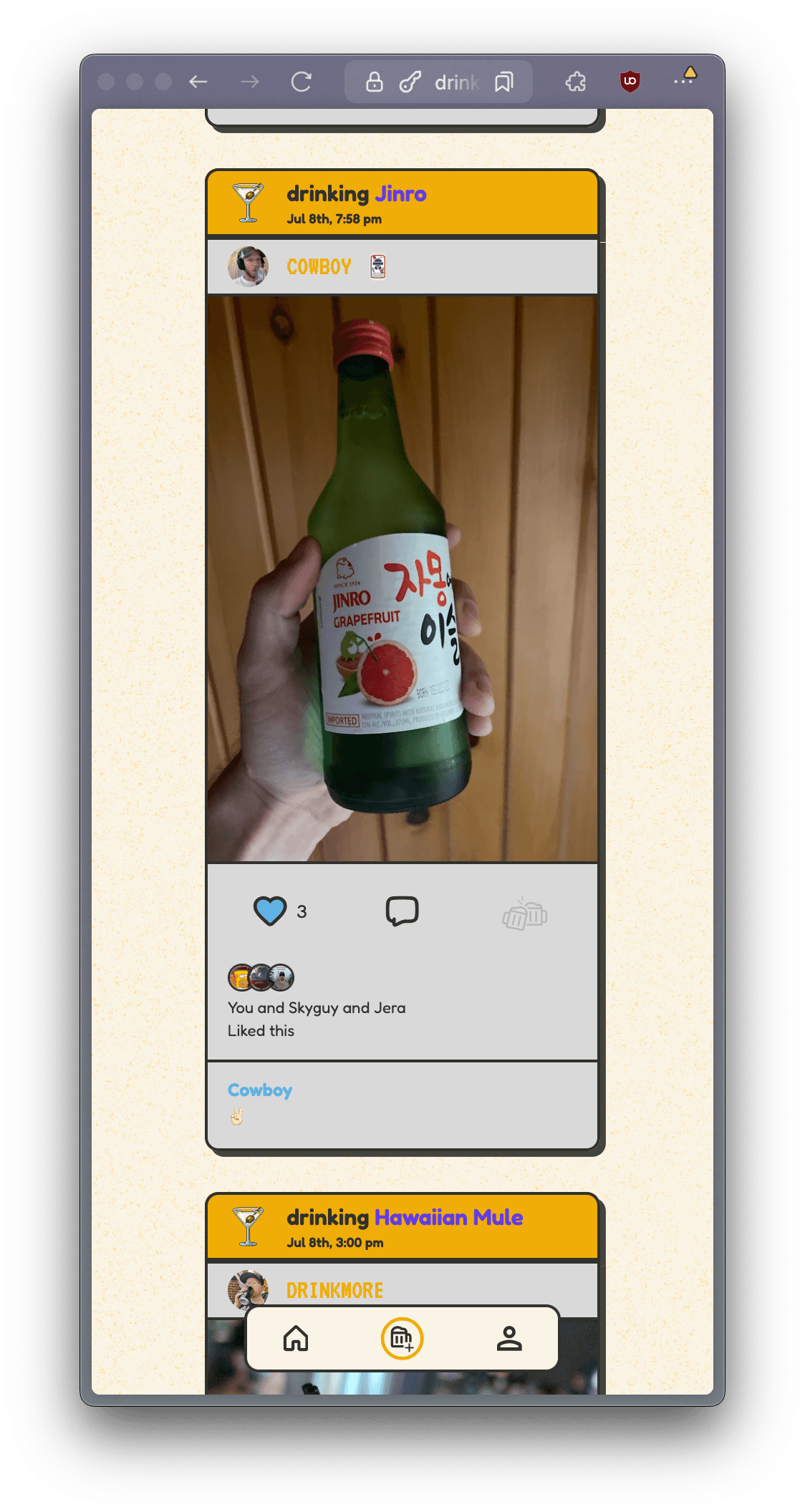 Users can install Drinkster as a PWA and enjoy push notifications when they post, when someone likes their post, or other activity occurs.