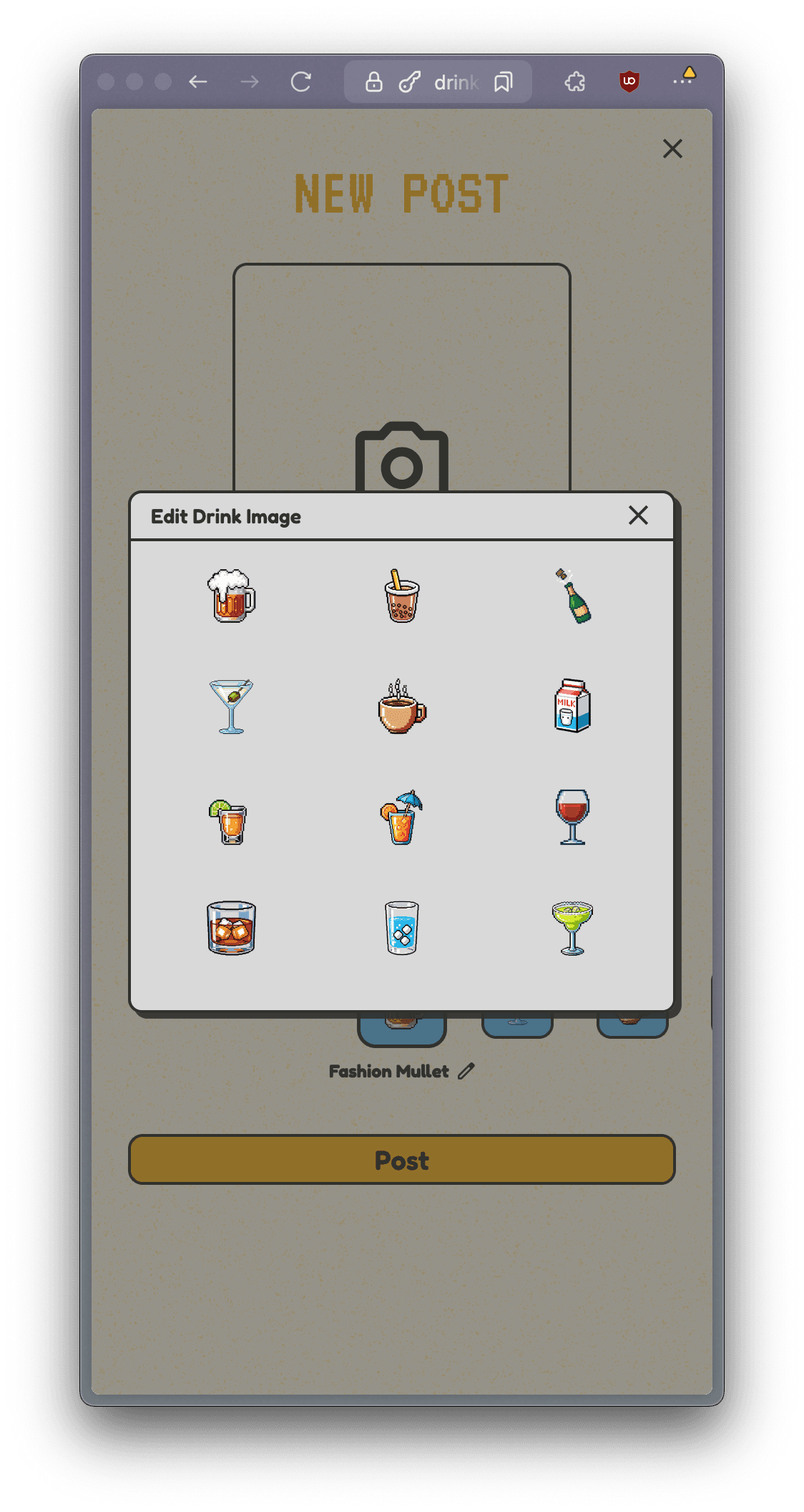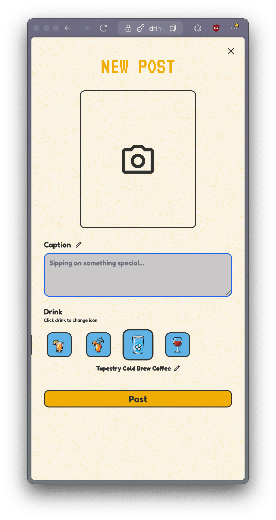 You can either choose a pre-made drink type or input your own to share what you're enjoying with your friends!