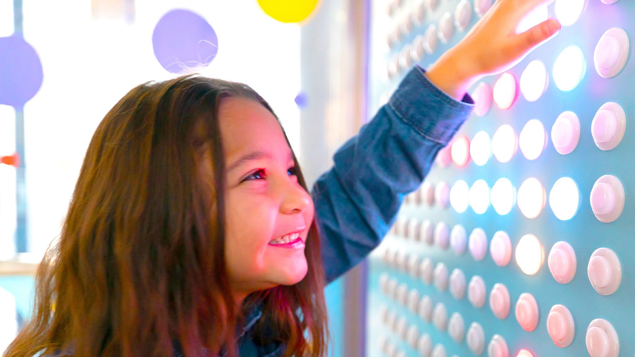 A way to delight children riding elevators with their parents, a wall of 600 arcade-style buttons that illuminate different colors when pressed.